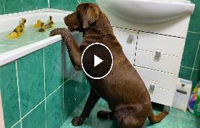 When 9 little ducklings in Essex, England, got separated from their mother, a dog named Fred took them under his wing -- or rather, his paw.